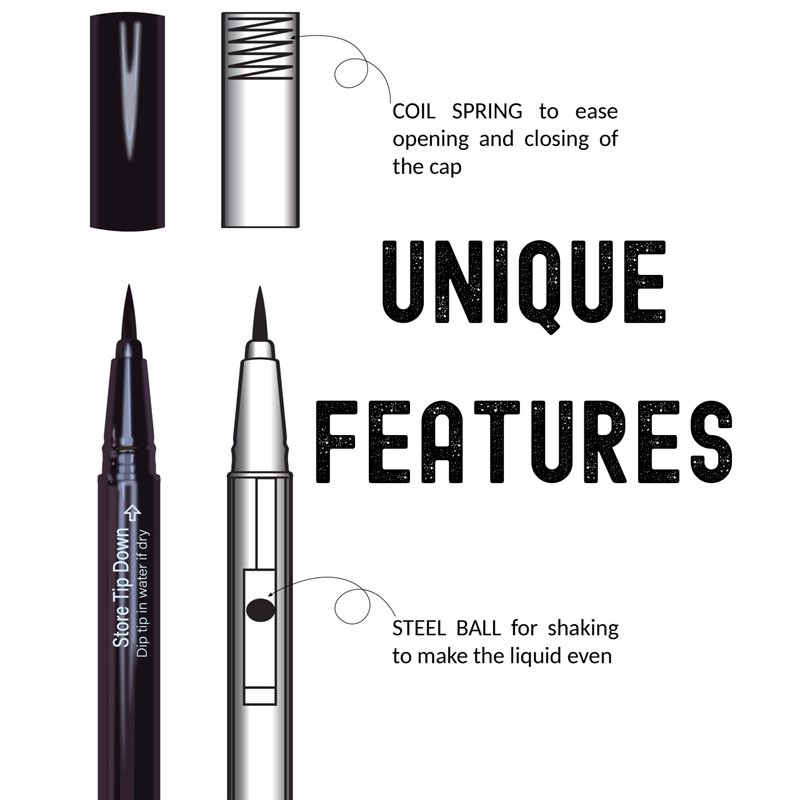 - MOTHER' DAY GIFT: Best Liquid Eyeliner Pen WATERPROOF with an intense black color that is incredibly fast and easy to apply; The precise, smooth, flexible brush tip draws from a fine to any thickness line; It doesn't go away with tears, in the shower, swimming, or while you sleep