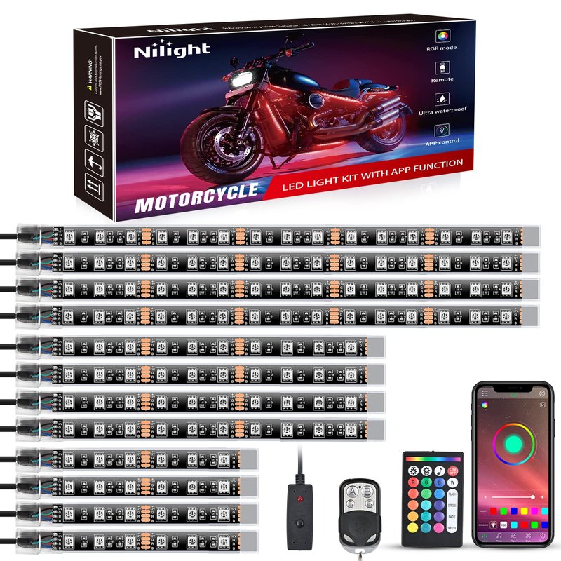 Nilight 12PCS Motorcycle RGB Led Light Kit Waterproof Multi Color Atmosphere Neon Accent Light APP and Remote Control Underbody Light Strips for Harley Davidson Honda Kawasaki Suzuki