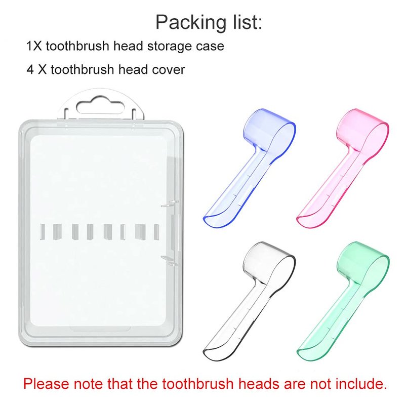 - Package include: 4X toothbrush head covers, 1X toothbrush head storage case. The toothbrush heads are not included.