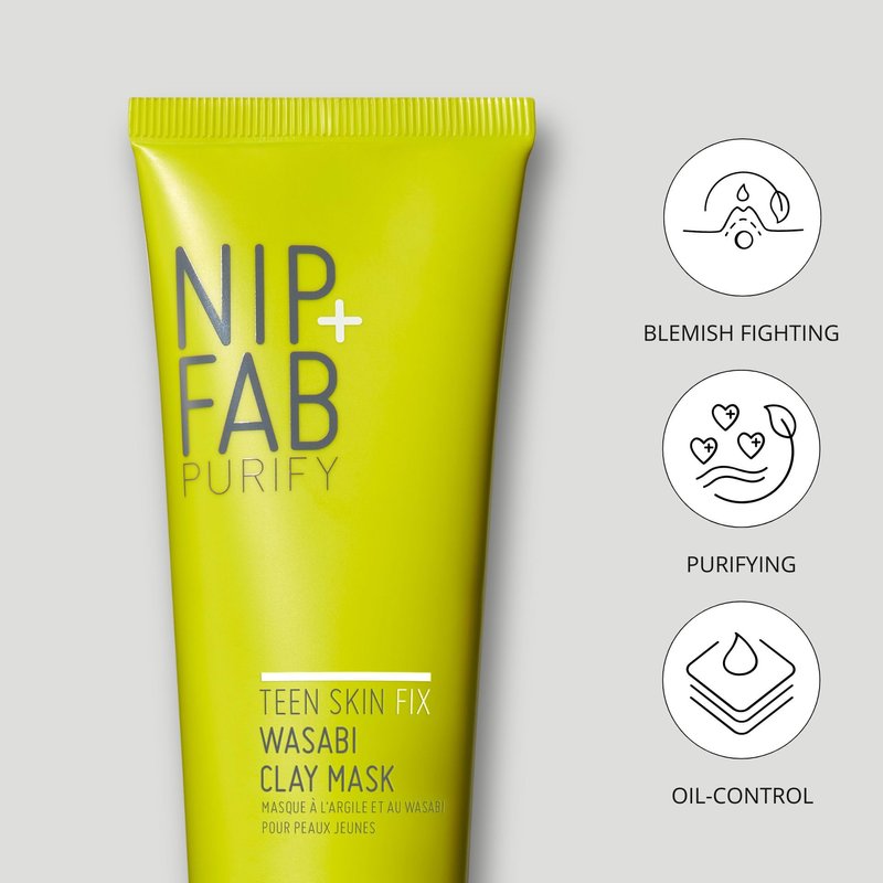 Nip+Fab Teen Skin Fix Wasabi Clay Mask, 2.54 fl oz, Purifies Congested Pores with Kaolin Clay and BHA Salicylic Acid, Healing and Moisturizing Formula