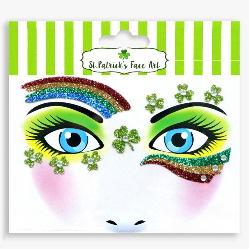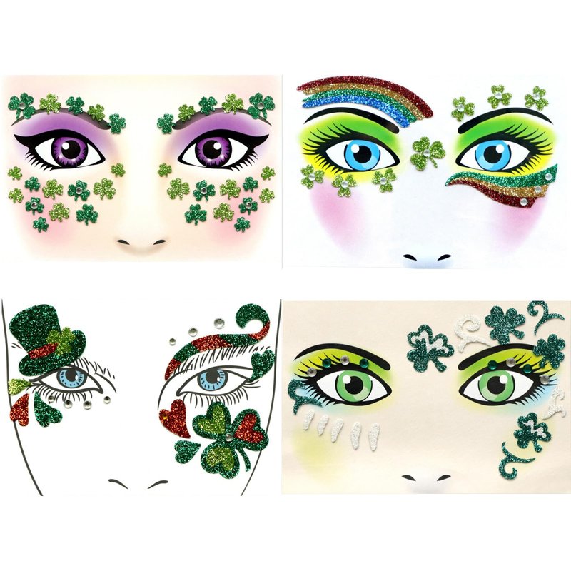Nirbffo Face and Body Glitter Stickers Shamrock Clovers Rainbow Hats Green 4Pieces