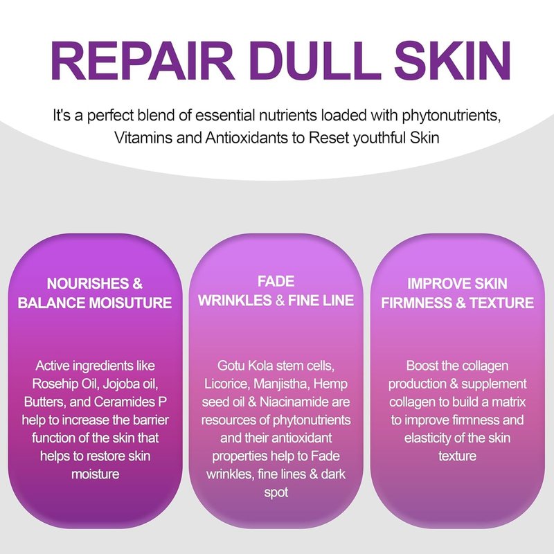 - REJUVENATE DULL SKIN AND RESET YOUTHFUL SKIN: Nirvana Nurture Anti-Aging Cream is packed with potent and natural ingredients such as Manjistha, Licorice, Hemp seed oil. These ingredients are rich in antioxidants and unique blends that properties to rejuvenate the skin tone and enhance radiance. Additionally, Gotu Kola stem cells, Vitamin C, Niacinamide, and Aloe vera are sources of flavonoid phytonutrients, leveraging their antioxidant properties to protect damaged skin and minimize wrinkles.