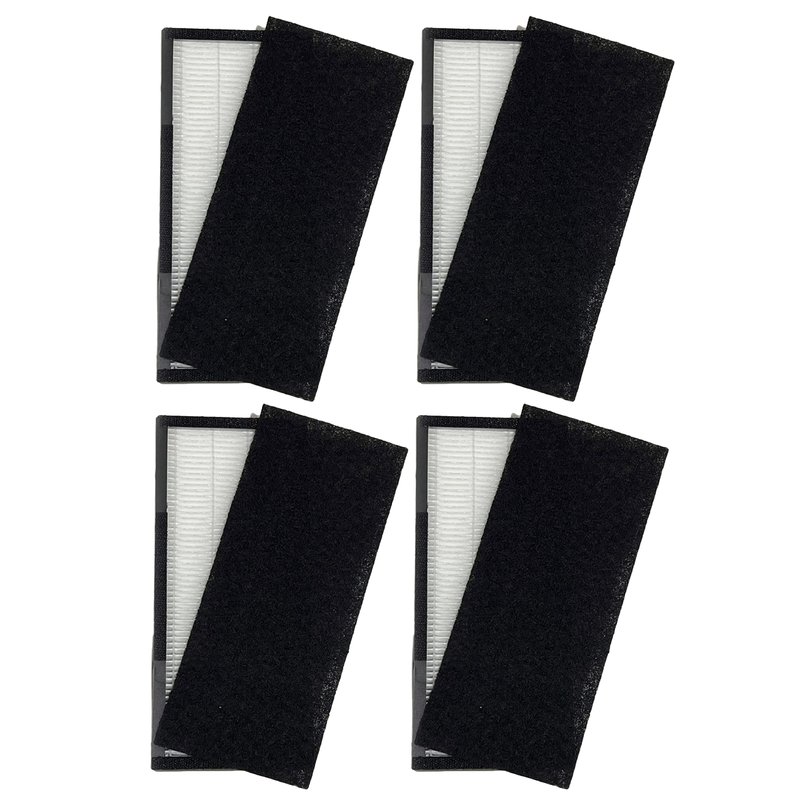 Nispira 3-in-1 replacement filter compatible with T100 / T300 Air Purifier. Compared to Part TF30. Approx. dimension of packaging is 9.6 x 4.1 x 1.5 inches. 4 Filters included. Washable black pre filter captures all visible particles such as hair, dust and debris. True HEPA filter then removes 99.97% of airborne particles down to 0.3 microns in the air. The final stage of activated carbon help deodorize any unfavorable household smell from cooking, pet, smoke and VOCs etc. Suggest to replace the filter every 6 months to maintain good and fresh indoor air.