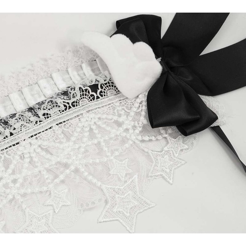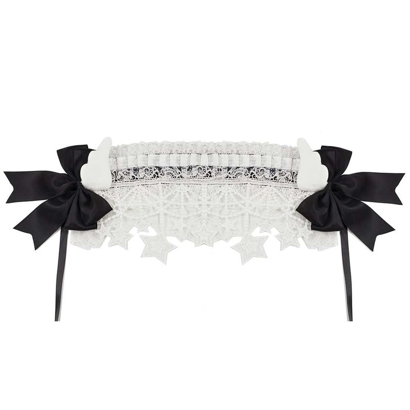 - Gorgeous full lace headdress with soft fabric angel wings / large bowknots. Can be attached as you like with double inner clips.