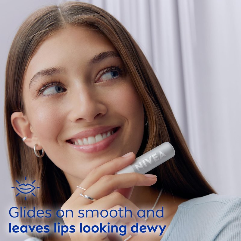 - Less Noticeable Lip Lines: NIVEA Dewy Lip Care moisturizes, helps reduce water loss, and leaves lips with visibly less noticeable lip lines and a dewy lip look