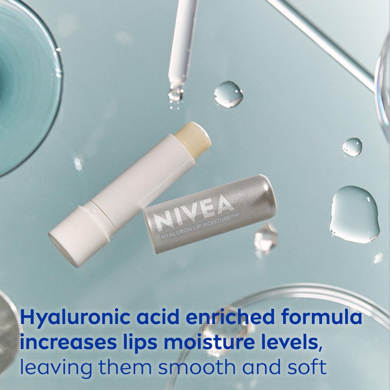 NIVEA Dewy Lip Care with Hyaluronic Acid, Lip Balm Leaves Visibly Less Noticeable Lip Lines and No Waxy Feel, 0.18 Oz, Pack of 4