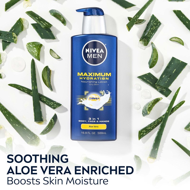 - 24+ Hour Moisture: NIVEA MEN Maximum Hydration 3-in-1 Nourishing Lotion intensively moisturizes skin for 24+ hours