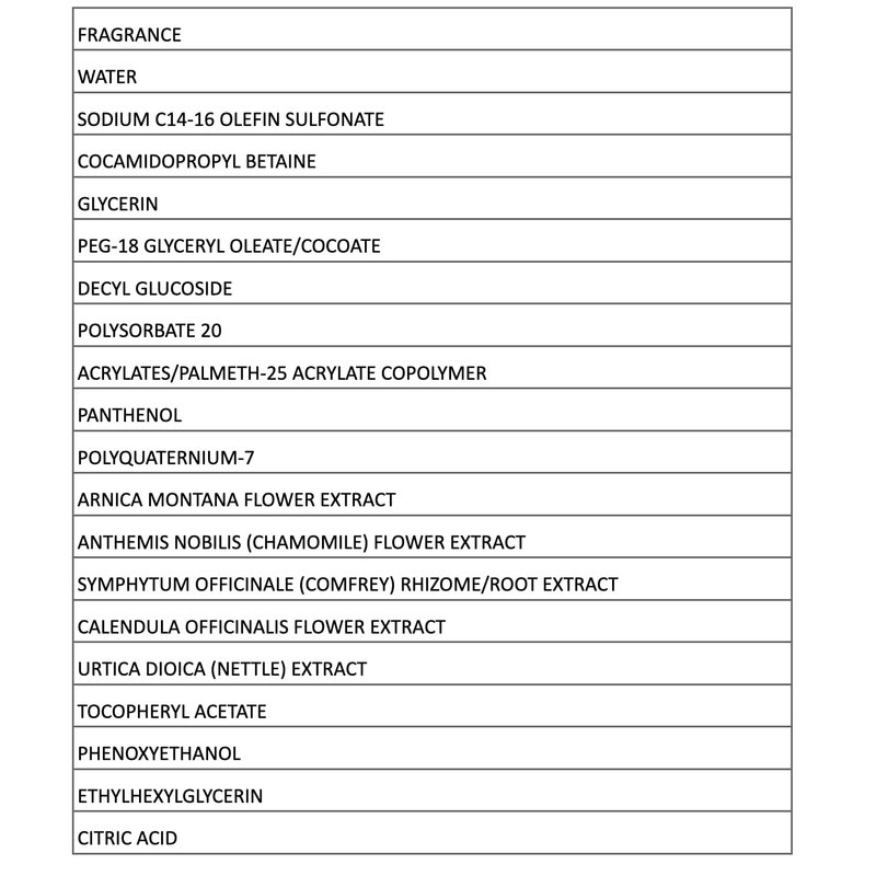 - Niven Morgan's body wash is enriched with vitamin E, soothing chamomile, comfrey and arnica extract.