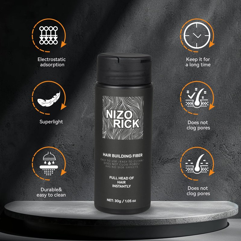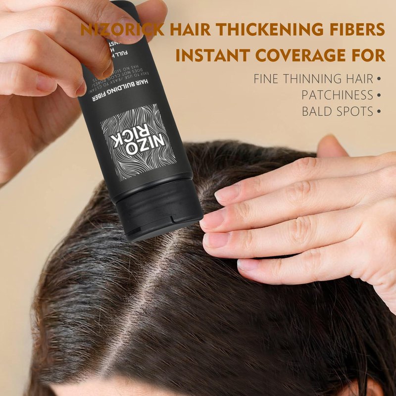 NIZORICK Hair Fibers for Thinning Hair,Hair Building Fibers Instantly Thicker & Fuller Look,Conceals Hair Loss Fill In Fine Hair Powder for Women and Men(30g/1.05oz) (New Black)