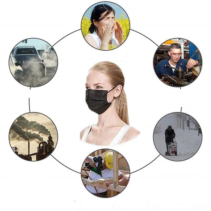 NNPCBT 100PCS 3 Ply Black Disposable Face Mask Filter Protection Face Masks