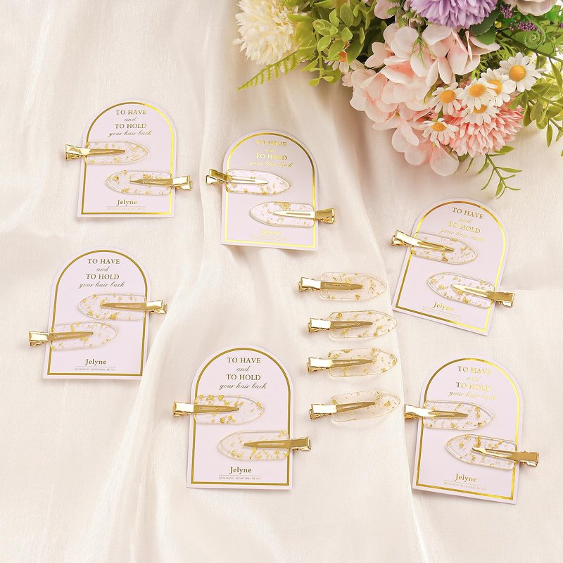 - Cute No Dent Gold Glitter Hair Clips Design:the bridesmaid hair clips are designed in gold glitter,without teeth which won't leave crease on your hair even after long time of wearing,the best choice for styling and makeup,each pair of the setting clips is attached to a nice-looking card and tucked into a small cellophane bag are printed with words "To have and to hold your hair back", gold color makes them look more elegant and attractive,the great bridesmaids gift choice