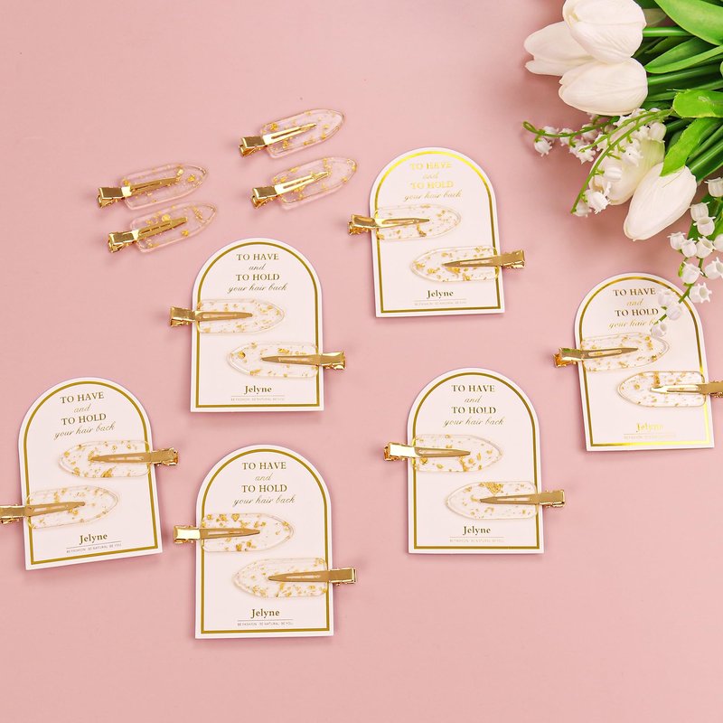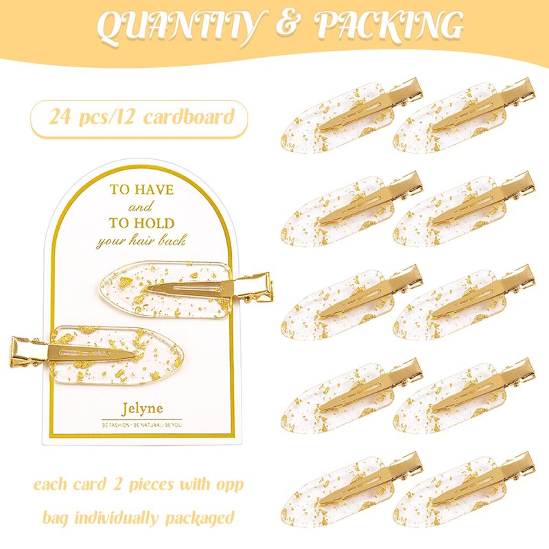 - Cute No Dent Gold Glitter Hair Clips Design:the bridesmaid hair clips are designed in gold glitter,without teeth which won't leave crease on your hair even after long time of wearing,the best choice for styling and makeup,each pair of the setting clips is attached to a nice-looking card and tucked into a small cellophane bag are printed with words "To have and to hold your hair back", gold color makes them look more elegant and attractive,the great bridesmaids gift choice