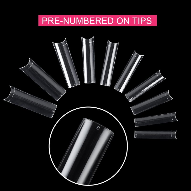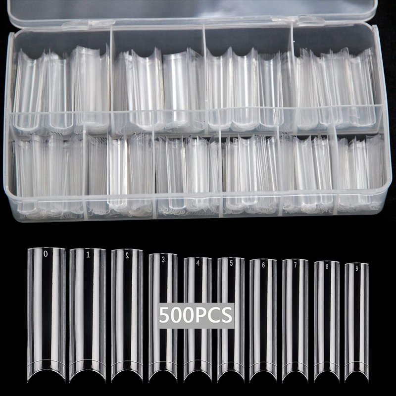 - 10 Sizes Nail Tips : XXL 500pcs acrylic nail tips Square Straight clear with 10 sizes are suitable for all kinds of nail satisfying various needs. Our french Extra Long C Curve tips made with great length and thickness.
