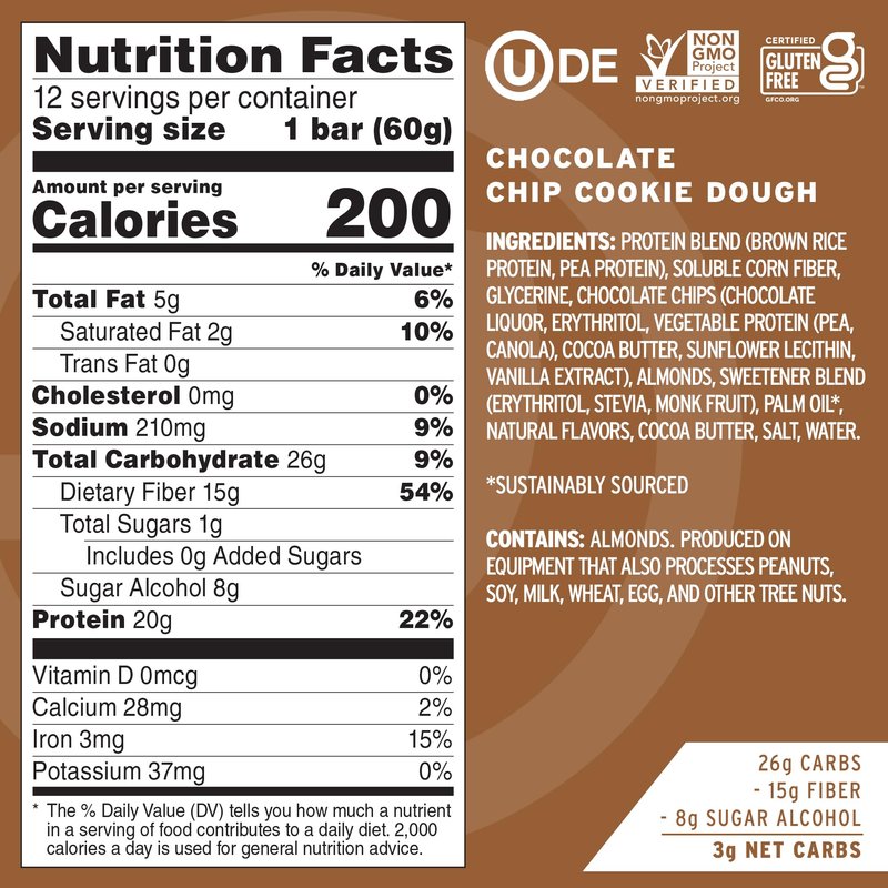 - CLEAN PLANT BASED PROTEIN: Clean fuel without any whey. One protein bar always has at least 2g of protein and only 1g of sugar. These vegan protein bars are great for active lifestyles of men and women. Our bars are certified gluten free, GMO-free (Non-GMO Project verified), soy free, refined sugar free, and kosher.
