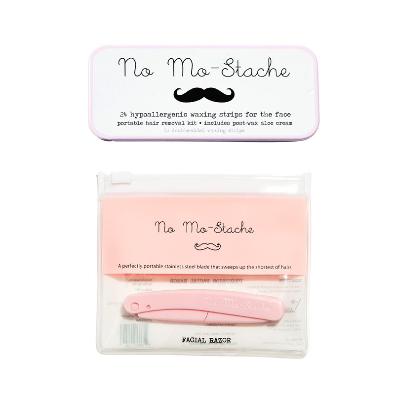 No Mo-Stache and Facial Razor Bundle contain 2 kits of our best-selling portable hair removal tools in one value set. 1 x No Mo-Stache 24-count lip wax and 1 x No Mo-Stache Folding Facial Razor. This set contains our signature portable lip wax kit with 24 individual waxing strips for the lip and face. Our portable hair removal kit also includes post-wax aloe cream to soothe skin. Our folding facial razor includes a travel pouch for dermaplaning and touch-ups on the go. Great for busy women on the go or travel. Salon quality waxing and smooth skin in seconds. On the go cold wax strips. Soothing aloe cream for post-wax relief.