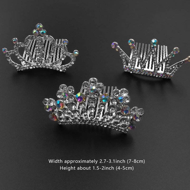 - Premium Material:These three pieces of tiara crown with hair comb are made of high quality alloy and rhinestone materials. Well polished comb will no hurt to your head or hair.