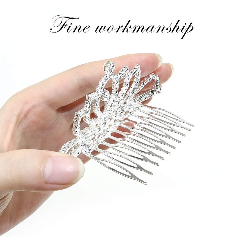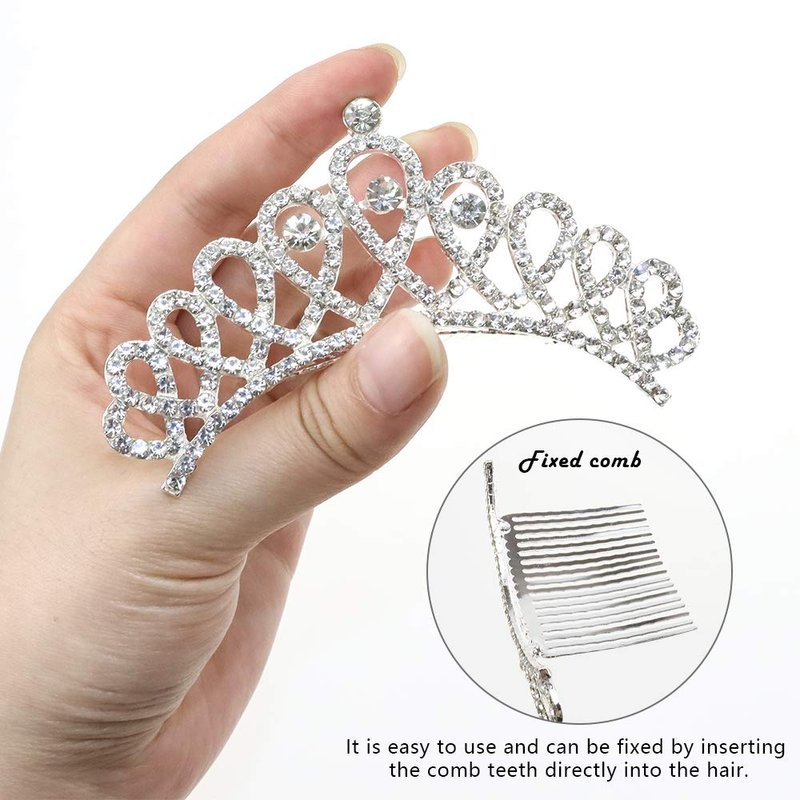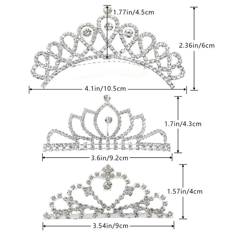 - 【Premium Material】These three pieces of tiara crown with hair comb are made of high quality alloy and rhinestone materials. Well polished comb will no hurt to your head or hair.