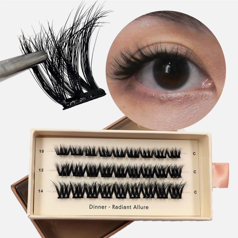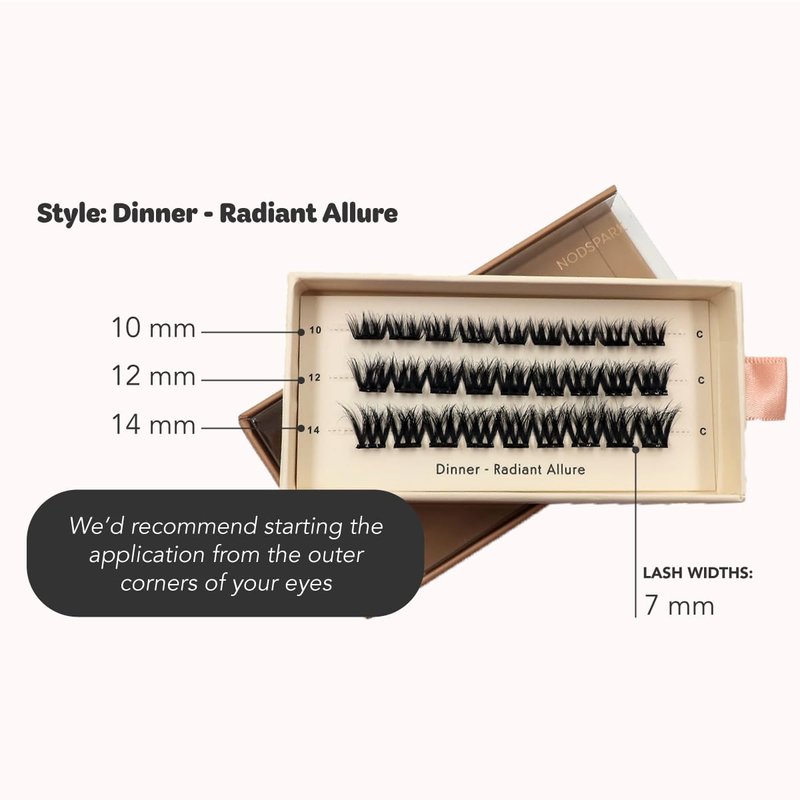 Nodspark Lazy Lashes - Dinner Radiant Allure (10mm 12mm 14mm) | Pre-adhesive Instant Press-on Lash Clusters | No Glue Required | Lasts 3-7 Days | Easy To Apply | Stick And Go | Only Need Tweezers