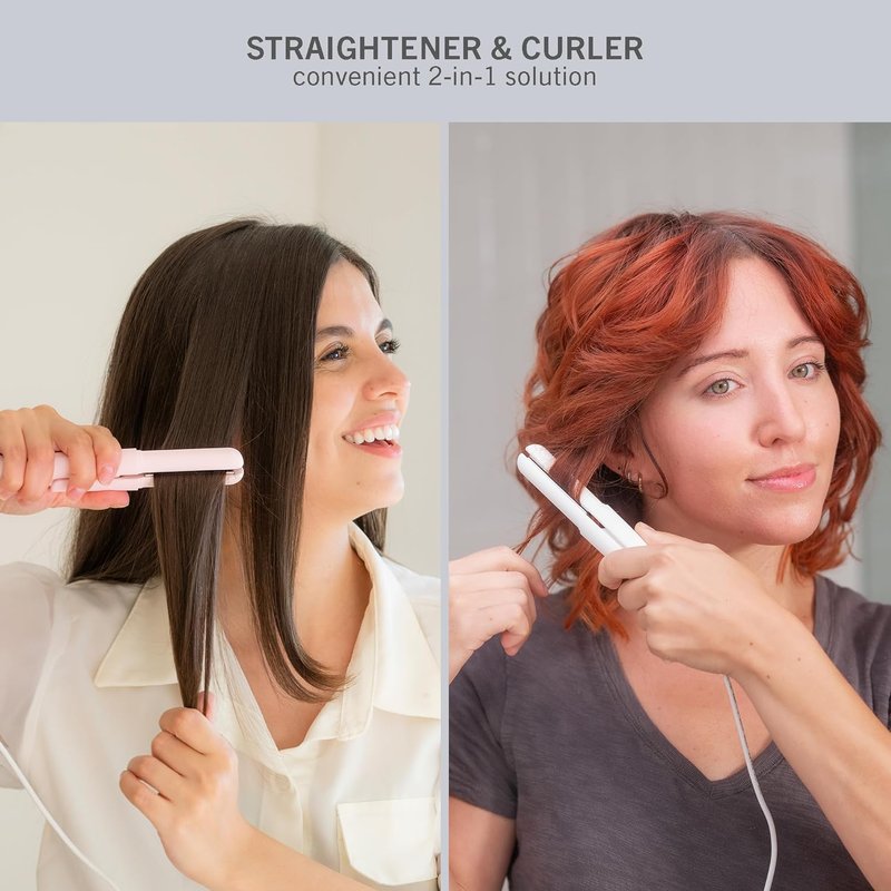 - ON-THE-GO STYLING: The NOGI Mini Flat Iron is a straightener and curler 2-in-1 that is ultra-compact and a must-have for on the go styling. The hair iron quickly reaches to 212°F within 50 seconds. ensures your hair is ready for styling quickly, reaching up to 374°F for instant fixes, bangs, and curls. A perfect companion for work trips, gatherings, travel, or touch ups in the car.