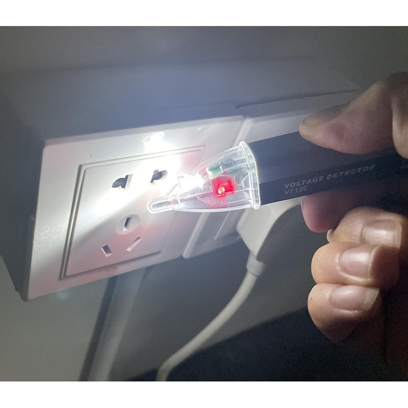 - MULTI-FUNCTION:It has the flashlight can help you work much better in dark.When it detects AC voltage, detection light will flash red and buzzer will sound short beeps.