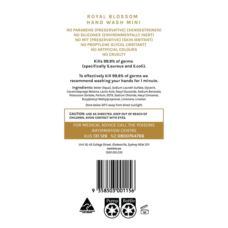 Nontre, Hand Wash, Royal Blossom, Gentle Hydrating Hand Soap, Long Lasting Scent, Trial Size Bottle, 120mL (4.06 FL Oz)