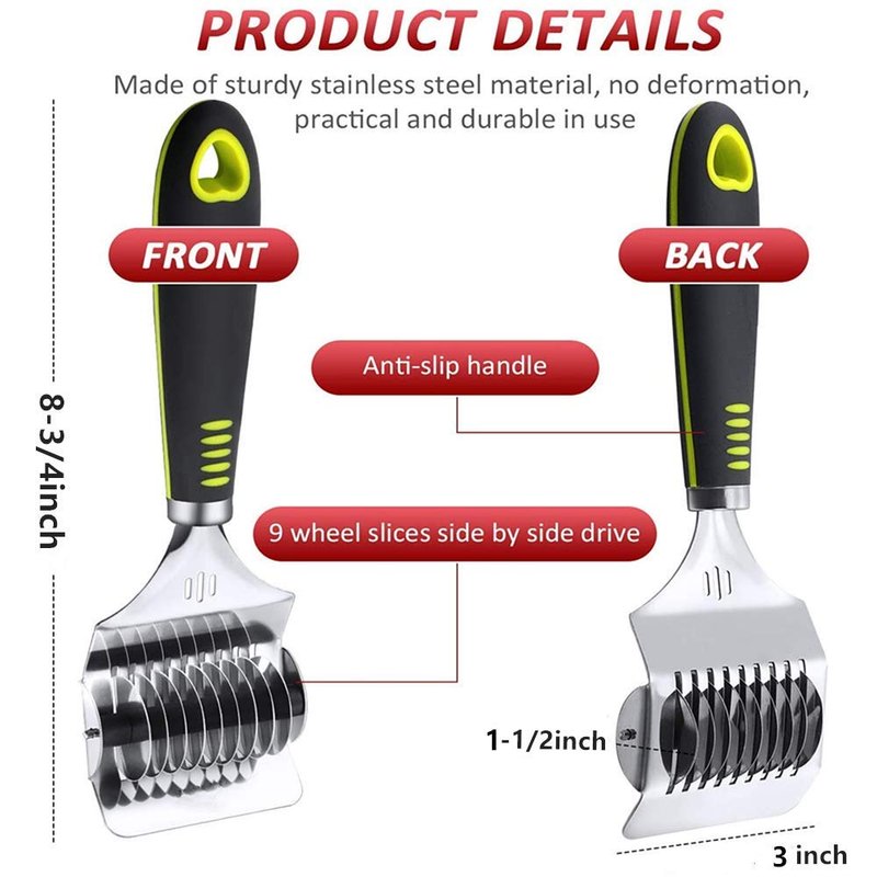 Nine wheels are cut side by side, and the model is neat, making the operation more convenient.Designed for cutting dough, garlic, vegetables, etc.