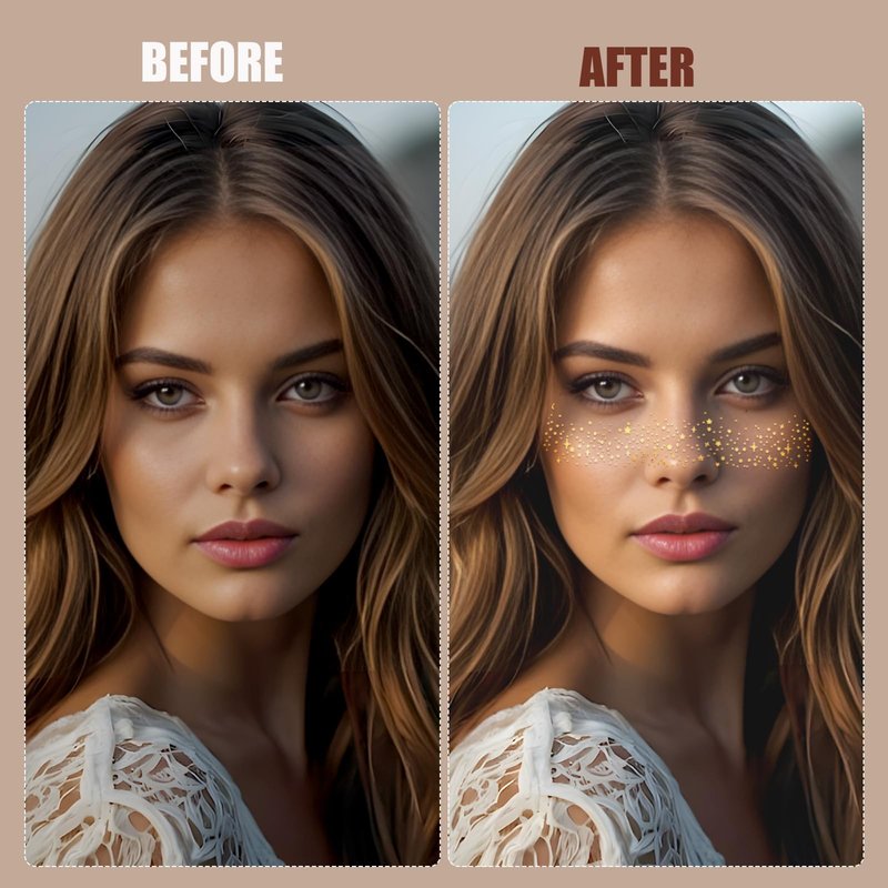 - OUR GLITTER MAKEUP PATCHES: Body glitter golden facial freckles are carefully crafted to ensure that they are gentle on all skin types while bringing a dazzling shine. They are perfect for wearing during Halloween, Christmas, birthday parties, concerts, dances, and performances!
