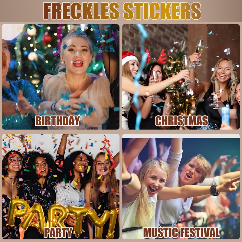- WATERPROOF AND LONG-LASTING SHINY FRECKLE FACIAL TATTOO: Using our christmas makeup glitter freckle patches can instantly make you radiant. The fake freckles makeup patches are waterproof, sweat-proof, and long-lasting, making them perfect for the beach, concerts, birthday parties, Halloween makeup, sunbathing, etc. It is the perfect choice to enhance your natural beauty.
