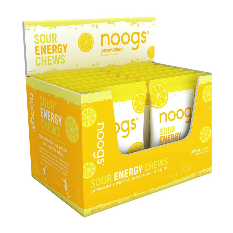 Noogs – Sour Electrolyte Energy Chews for Running, Cycling, & Endurance Sports | Gummies for Runners | Gel Fuel | Vegan | Dietitian Designed Sports Nutrition | Lemon Zinger (12 Pack)