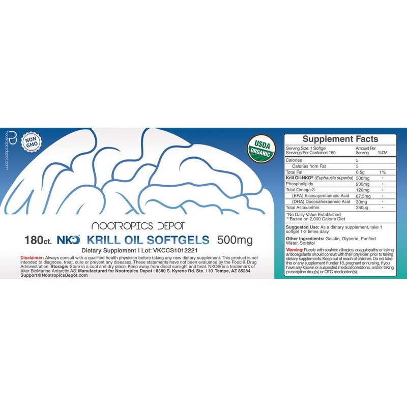 Nootropics Depot NKO™ Krill Oil Softgels | 500mg | 180 Count | Contains DHA + EPA and Astaxanthin | Omega 3 Supplement | Natural | Supports Cardiovascular + Joint Health