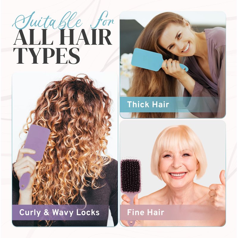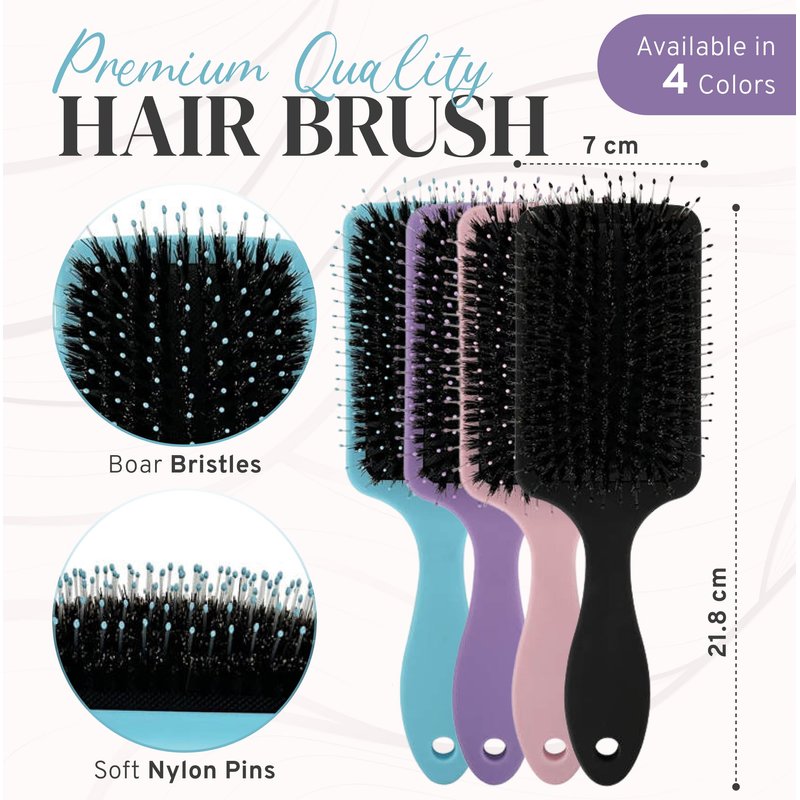 - NATURAL BOAR BRISTLE HAIR BRUSH with Nylon Pins: This isn't just any brush. We've blended natural boar bristles with nylon pins to detangle, smooth, and distribute your scalp's natural oils through your hair. It's like giving your hair a mini spa treatment every day.