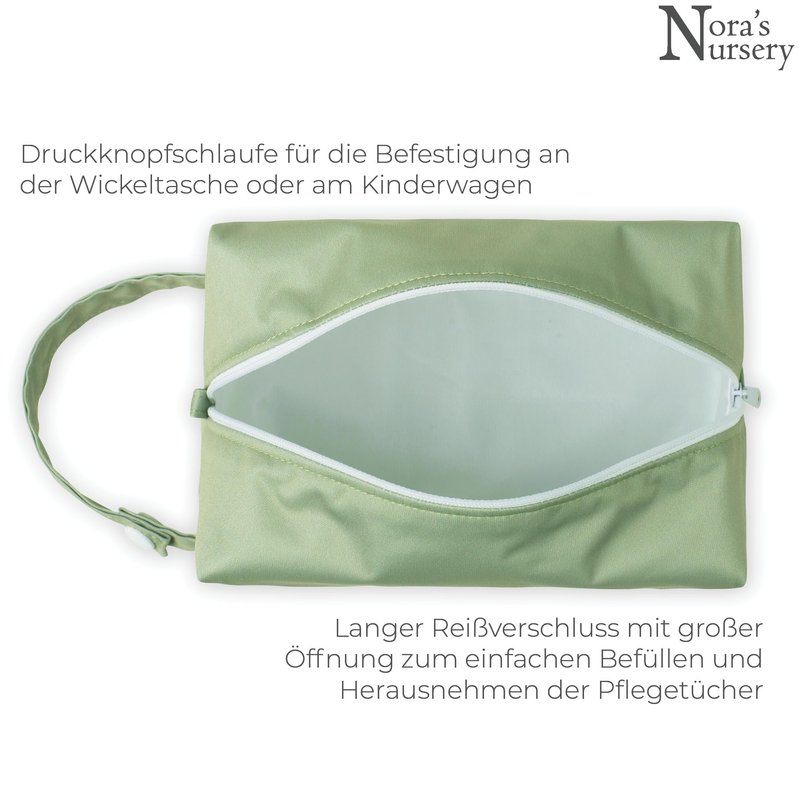- WITH A DIAPER WIPE HOLDER: Comes with a reusable wipes pouch to store prepped wipes , holds 20-25 of our Nora's Nursery cloth baby wipes. Use this around the house or as on the go travel wipes case.
