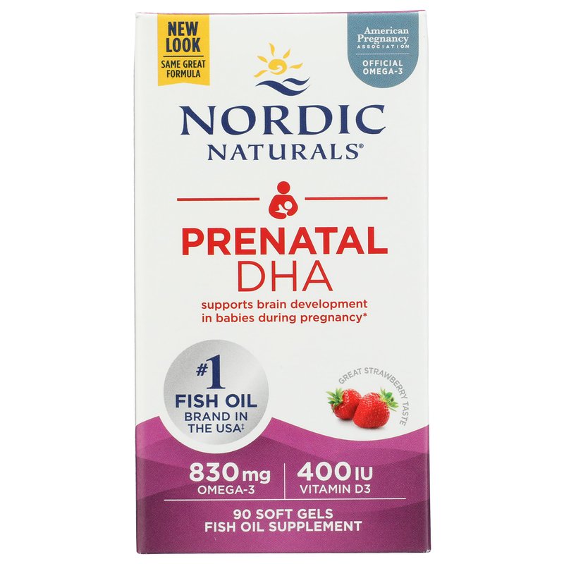Nordic Naturals Prenatal DHA, Strawberry - 90 Soft Gels - 830 mg Omega-3 + 400 IU Vitamin D3 - Supports Brain Development in Babies During Pregnancy & Lactation - Non-GMO - 45 Servings