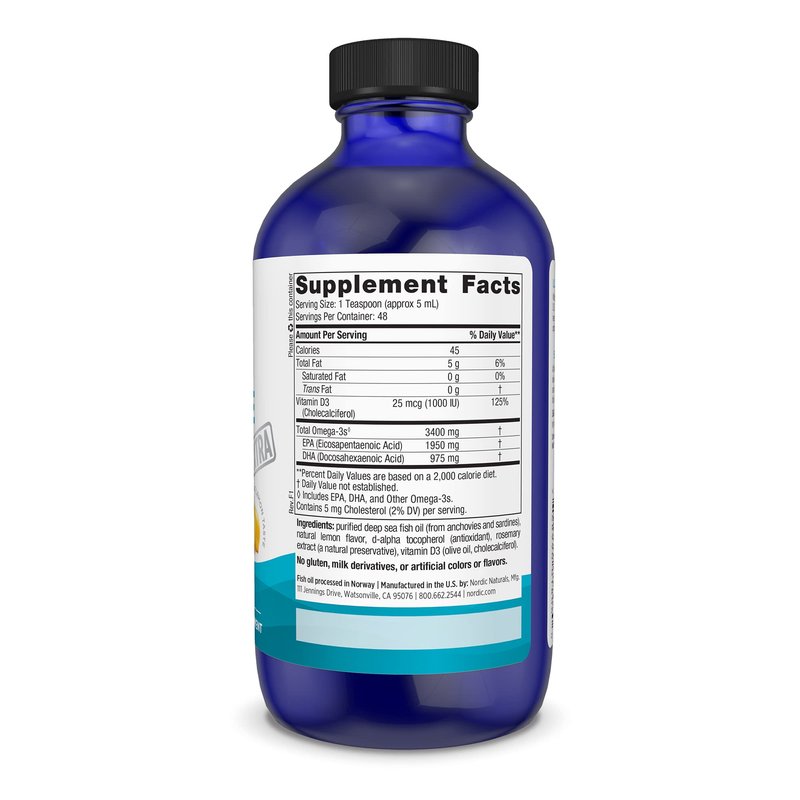 - DOCTOR-RECOMMENDED FORMULA - Nordic Naturals Ultimate Omega Xtra liquid features our highest concentration omega-3 fish oil. The added Vitamin D3 aids in calcium absorption & supports mood, joint & immune system health.