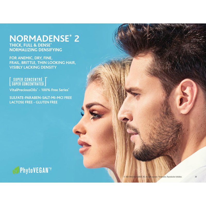 Thickening Shampoo. Hair growth shampoo This 100% Free Series* TruColour Care* super concentrated colour-preserving shampoo is Free of harsh Sulfates, Parabens, Salt, MI, MCI, Lactose and Gluten free. Its luxurious lather gently cleanses and helps nourish, revitalize, care and protect by deeply infusing colour-treated hair and scalp with rich 100% VEGAN Nourishing Systems. Lightweight formula helps hair look and feel fresher longer. Hair Thermo-Protection. NORMADENSE-2* Weightless System deeply nourishes and helps purify, hydrate, re-balance, energize, stimulate and strengthen the Nutrient-Deprived Zones of scalp, follicles and hair. Helps purify hair follicles and scalp of suffocating impurities, residues and clogging sebum; promoting scalp micro-circulation to sustain healthy scalp environment for full hair potential. VitalPreciousOils* & LipidBound Hydration* help correct and prevent the visible signs of hair damage, oxidation and premature aging; revealing youthful softness, movement, vibrant color and shine. PhytoBraceForce*, Ceramides, Biotin, Niacinamide, Proteino- Pea- BioPeptides* help fortify and repair, acting as a Fortifying Support Structure, adding substance, boosting texture & body, visibly transforming and amplifying hair diameter fiber-by-fiber. Instantly, hair looks and feels energized, weightlessly lifted, stronger, thicker, denser and fuller for VISIBLE TOUCHABLE DIMENSION* - for long lasting style retention and healthy looking results.