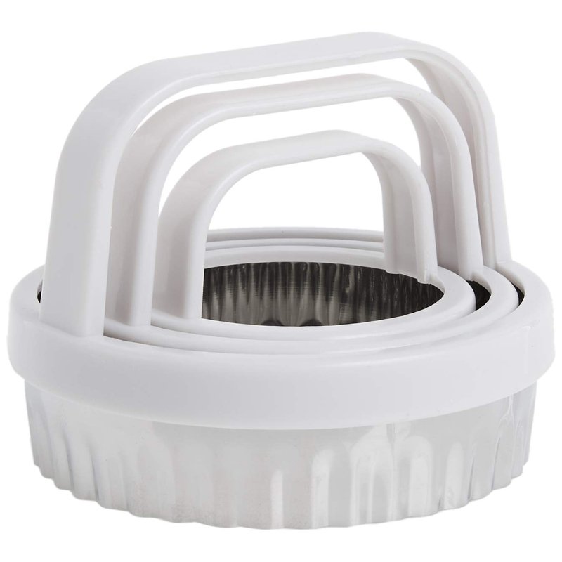 - Set of 3 cutters sizes: 1.75"/4.5cm, 2.25"/5.5cm, 2.75"/7cm