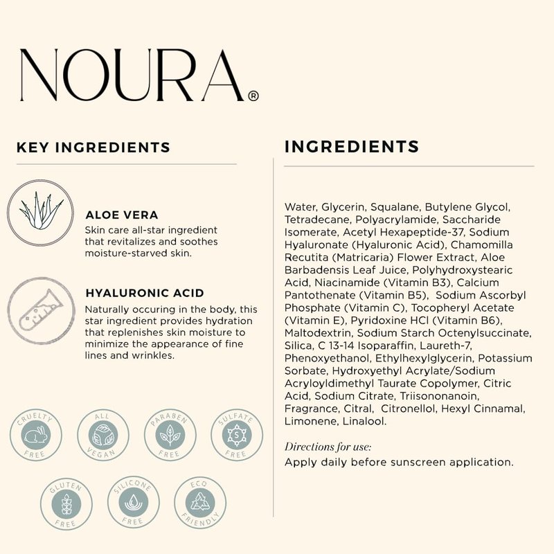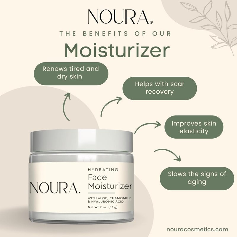 Noura Hydrating Face Moisturizer Cosmetics - Lightweight Daily Moisturizer for Hydration & Scar Repair with Aloe, Hyaluronic Acid, Chamomile & Vitamins E, C & B, 2oz