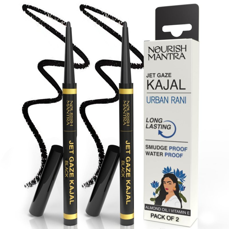 NOURISH MANTRA Jet Gaze Kajal Urban Rani - Combo - Black & Black 0.35g/ with Almond Oil, Argan Oil & Vitamin E/Intense Pigmentation/Smudge Proof/Water Proof/Long Lasting