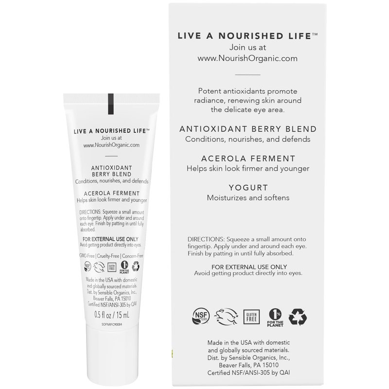 - ANTIOXIDANT EYE CREAM: The Nourish Organic Age Defense Eye Treatment (0.5 Fl Oz) helps reduce the signs of aging with your favorite botanicals, including aloe vera and rosewater. A washable cotton round is included for all your face care needs.