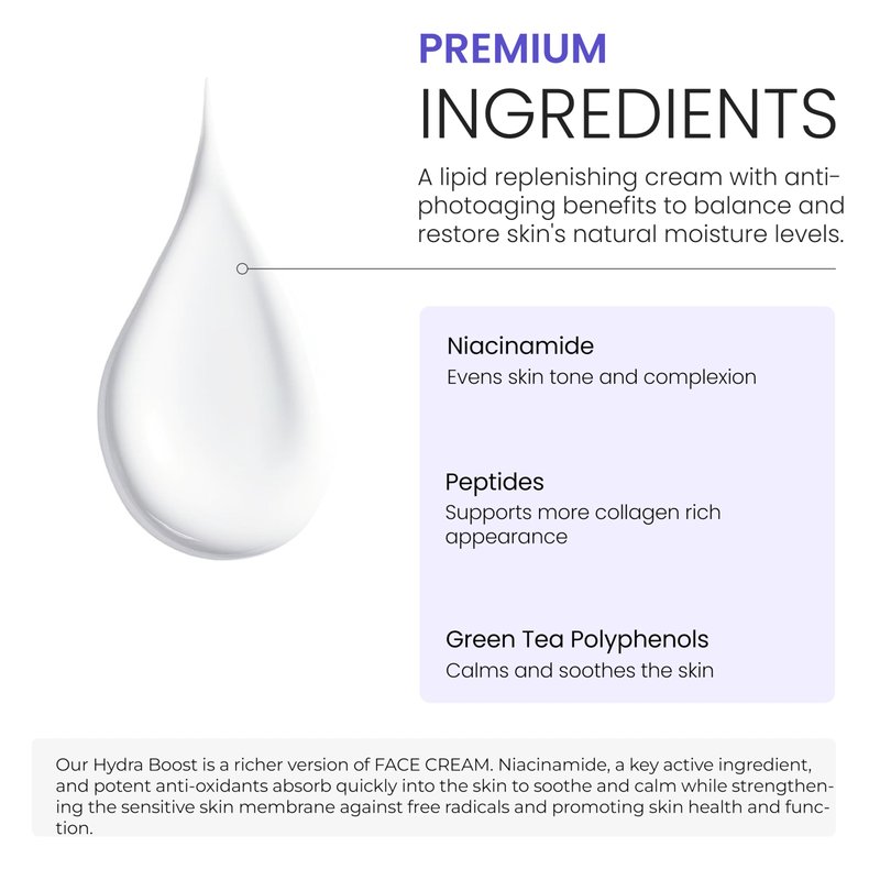 - Premium Face Cream for Dry and Oily Skin: This face lotion offers optimum hydration as an oil-free niacinamide facial moisturizer for oily skin and niacinamide moisturizer for acne-prone skin