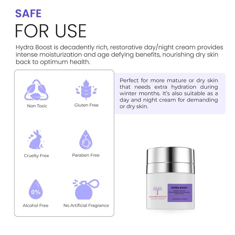 - Advanced Face Care Formula: This NOVA DERM INSTITUTE Hydra-Boost Anti Aging Face Cream for sensitive skin. Women utilize the latest K beauty innovations for a hydrating facial skin care solution