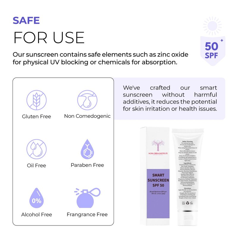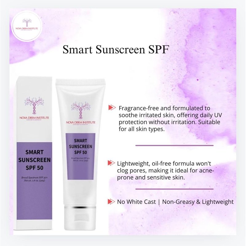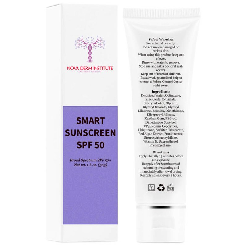 NOVA DERM INSTITUTE Smart Sunscreen SPF 50 Sheer Sunscreen for face Zinc oxide Daily UV Facial Sunscreen Face Moisturizer with SPF Broad Spectrum Sunblock Anti-aging Skin Care for Healthy Glow