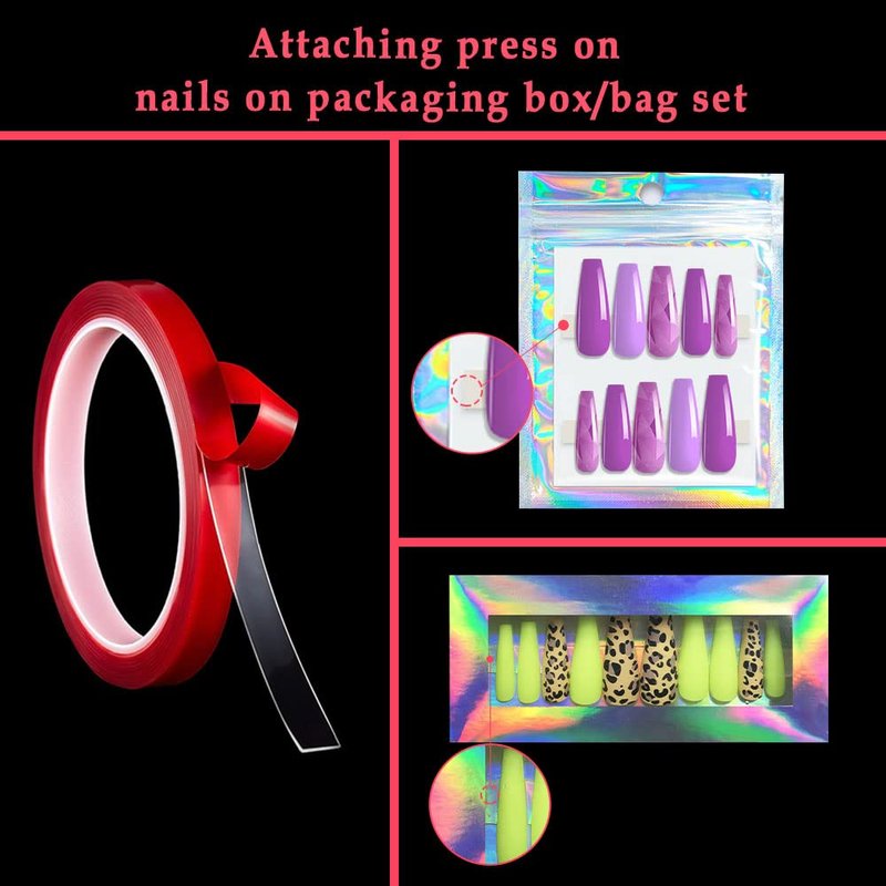 - The package includes 2 rolls of 3M double sided tape, long enough to stick many press on nails packaging boxes or bags,or to show nail tips on nail art display stand.