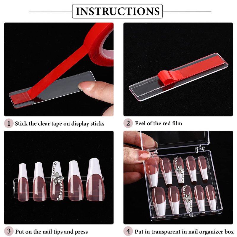 - 【Pack & Size】-- You will receive 10 pieces of empty press on nail storage boxes with 20 pieces of arcylic nail display sticks, and 1 piece of double-side tape. (Nails not included) Please **NOTE** the size: Approx. measurement inside box : 2.56 x 2.56 inches / 6.5 x 6.5cm