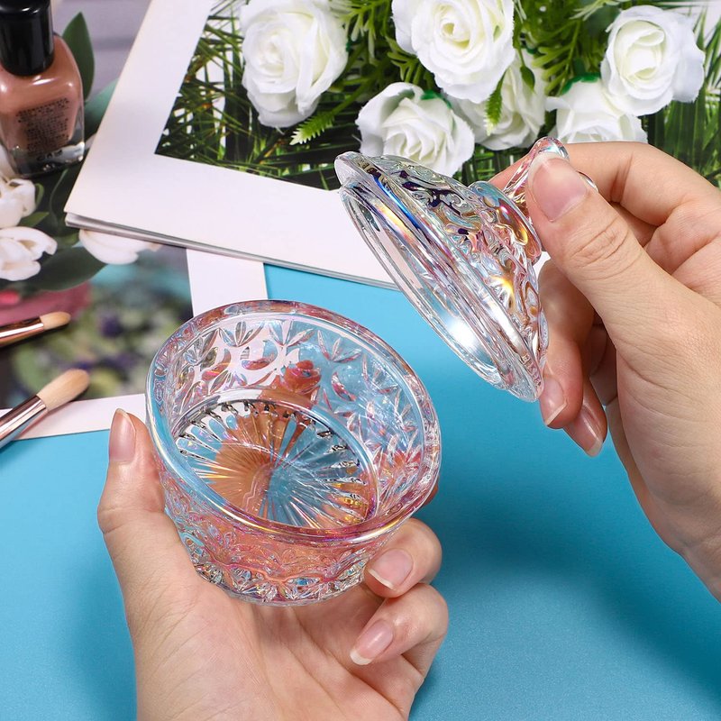 Noverlife Glass Nail Dappen Dish with Lid, Dazzling Crystal Dappen Bowl for Holding Nail Art Acrylic Liquid & Powder, Nail Art Glassware with Lid for Nail Decor Manicure Care, Dappen Monomer Holder