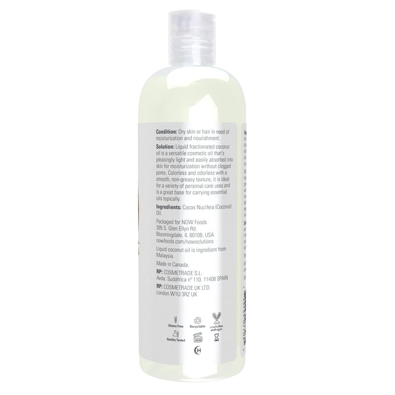 NOW Foods Solutions, Liquid Coconut Oil, Light and Nourishing, Promotes Healthy-Looking Skin and Hair, 16-Ounce