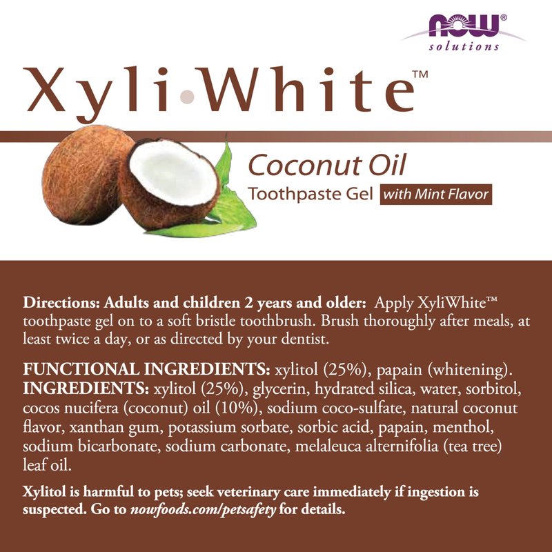 NOW Solutions, Xyliwhite™ Toothpaste Gel, Coconut Oil, Cleanses and Whitens, Cool Coconut-Mint Taste, 6.4-Ounce