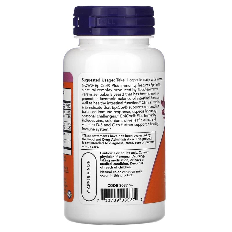 - ZINC, SELENIUM, AND VITAMIN D-3: NOW EpiCor Plus Immunity in veggie capsules contains zinc, selenium, and vitamins D-3 and C for healthy immune support