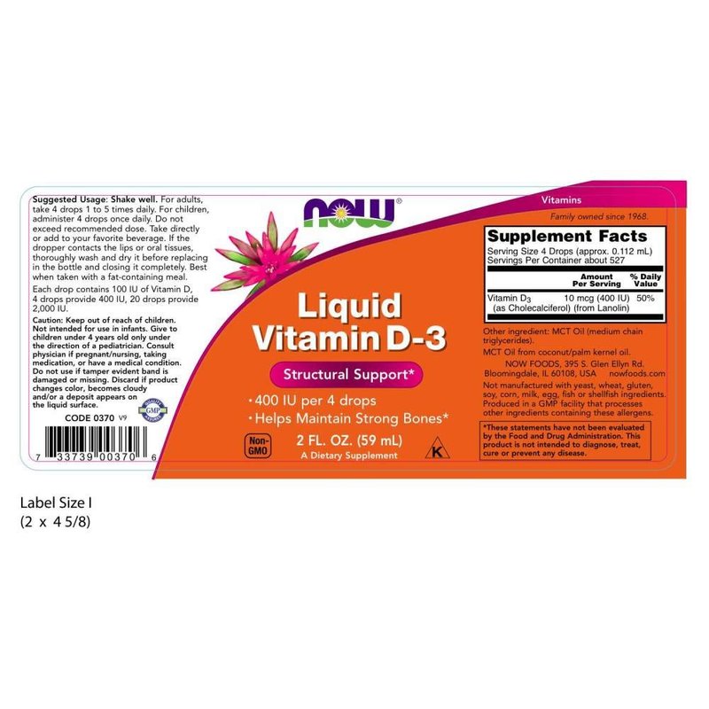 NOW Supplements, Liquid Vitamin D-3, Strong Bones*, Structural Support*, 2-Ounce