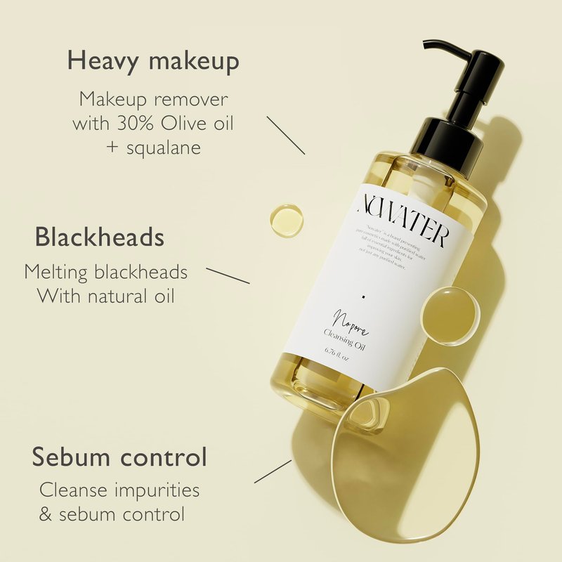 NOWATER No Pore Cleansing Oil | Makeup Cleansing Oil | Pore Cleansing, Blackheads Removal | Olive Oil, Tea Tree, Squalane | Korean Skin Care for face (6.76 fl.oz)